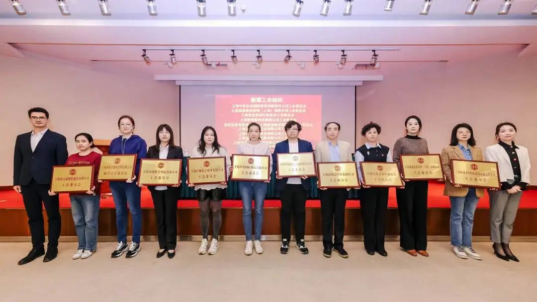 在歡快的樂曲和熱烈的掌聲中,授予10家新建工會(huì)組織的銘牌亮相會(huì)場(chǎng)。