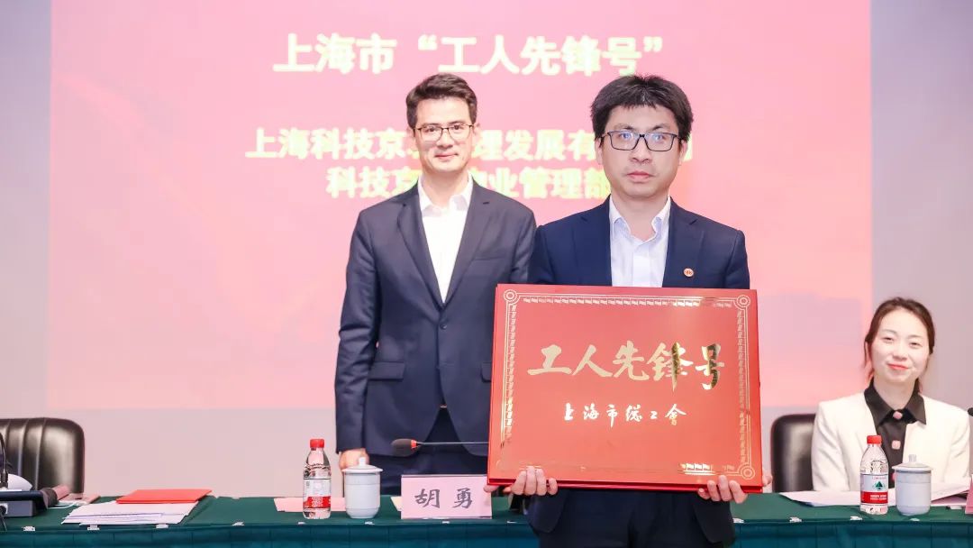 向上??萍季┏枪芾戆l(fā)展有限公司科技京城物業(yè)管理部頒授上海市“工人先鋒號(hào)”銅牌。