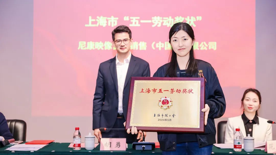 向尼康映像儀器銷售(中國(guó))有限公司頒授上海市“五一”勞動(dòng)獎(jiǎng)狀銅牌。