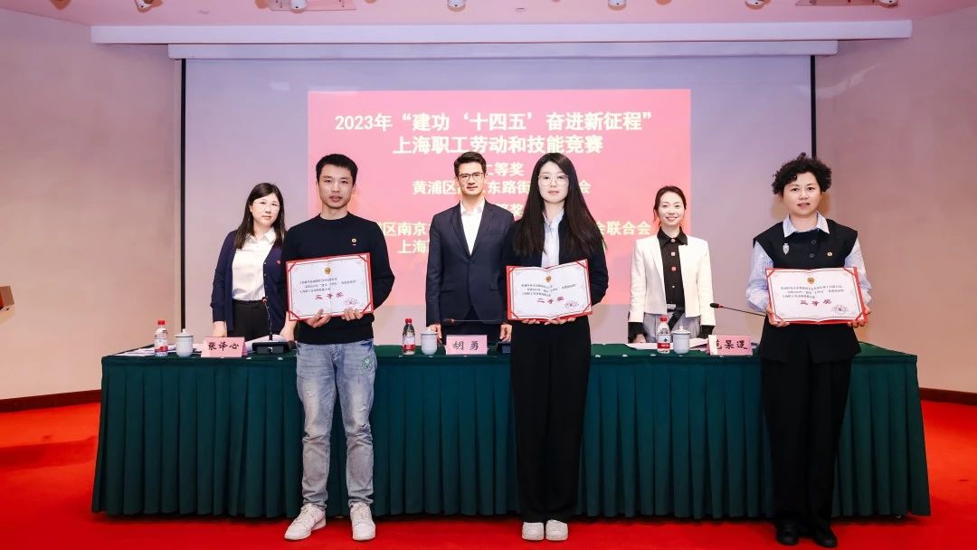 向黃浦區(qū)南京東路街道總工會(huì)、黃浦區(qū)南京東路街道美發(fā)美容行業(yè)工會(huì)聯(lián)合會(huì)和上海耶里夏麗餐飲管理有限公司頒授“建功‘十四五’ 奮進(jìn)新征程”上海職工勞動(dòng)和技能競(jìng)賽證書。