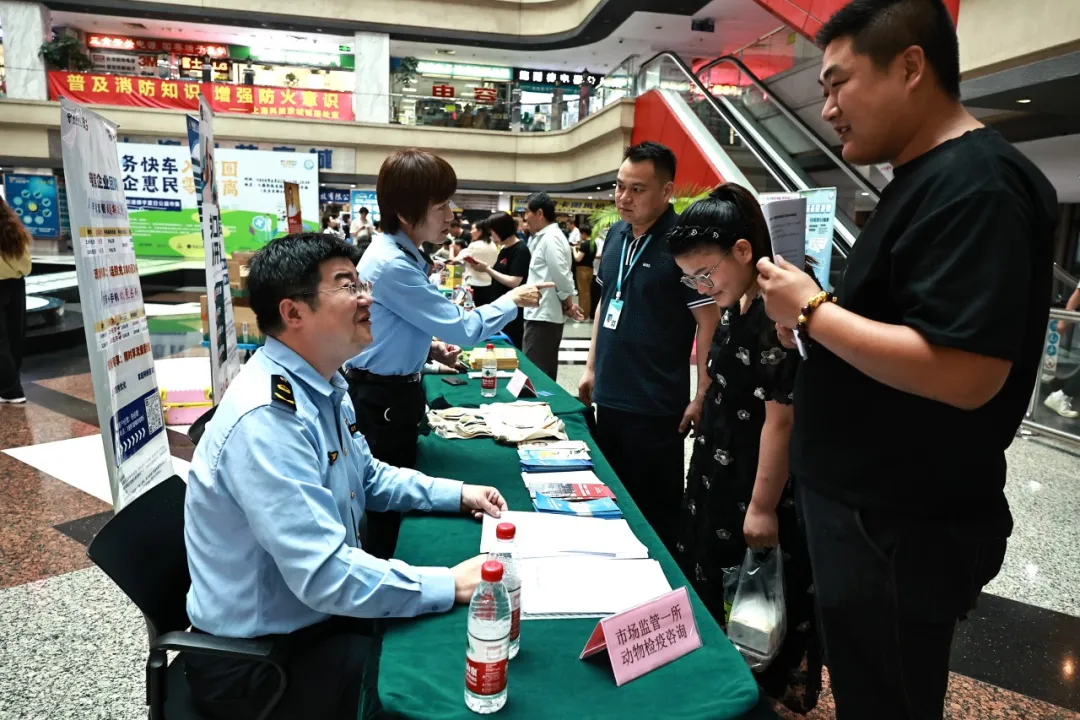在政策咨詢區(qū)域,市場監(jiān)管一所、中國郵政等攤位聚焦各類業(yè)租戶需求及關心的問題,通過發(fā)放宣傳頁、現(xiàn)場答疑等方式面對面“零距離”提供咨詢服務。